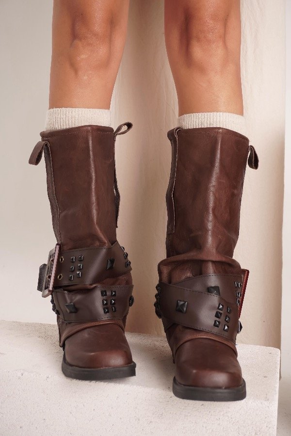 Son(CUERO )combina líneas limpias con detalles protagonistas: hebillas oversized y tachas que elevan cualquier look. Disponible en negro clásico y marrón intenso.